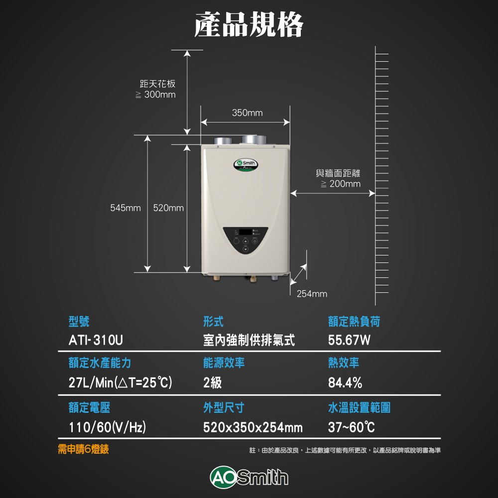 | 瓦斯熱水器型號 | ATI-310U | ||