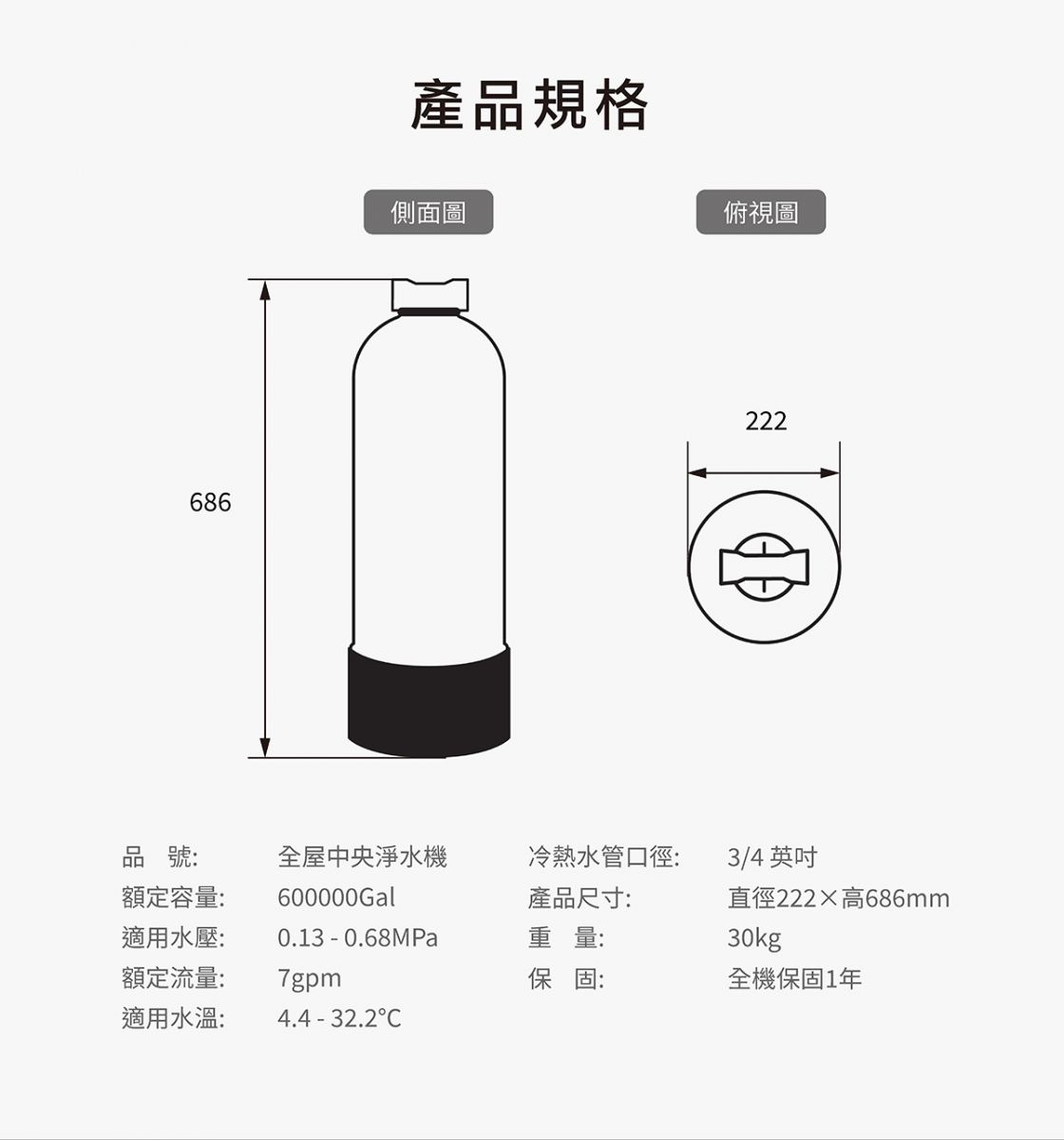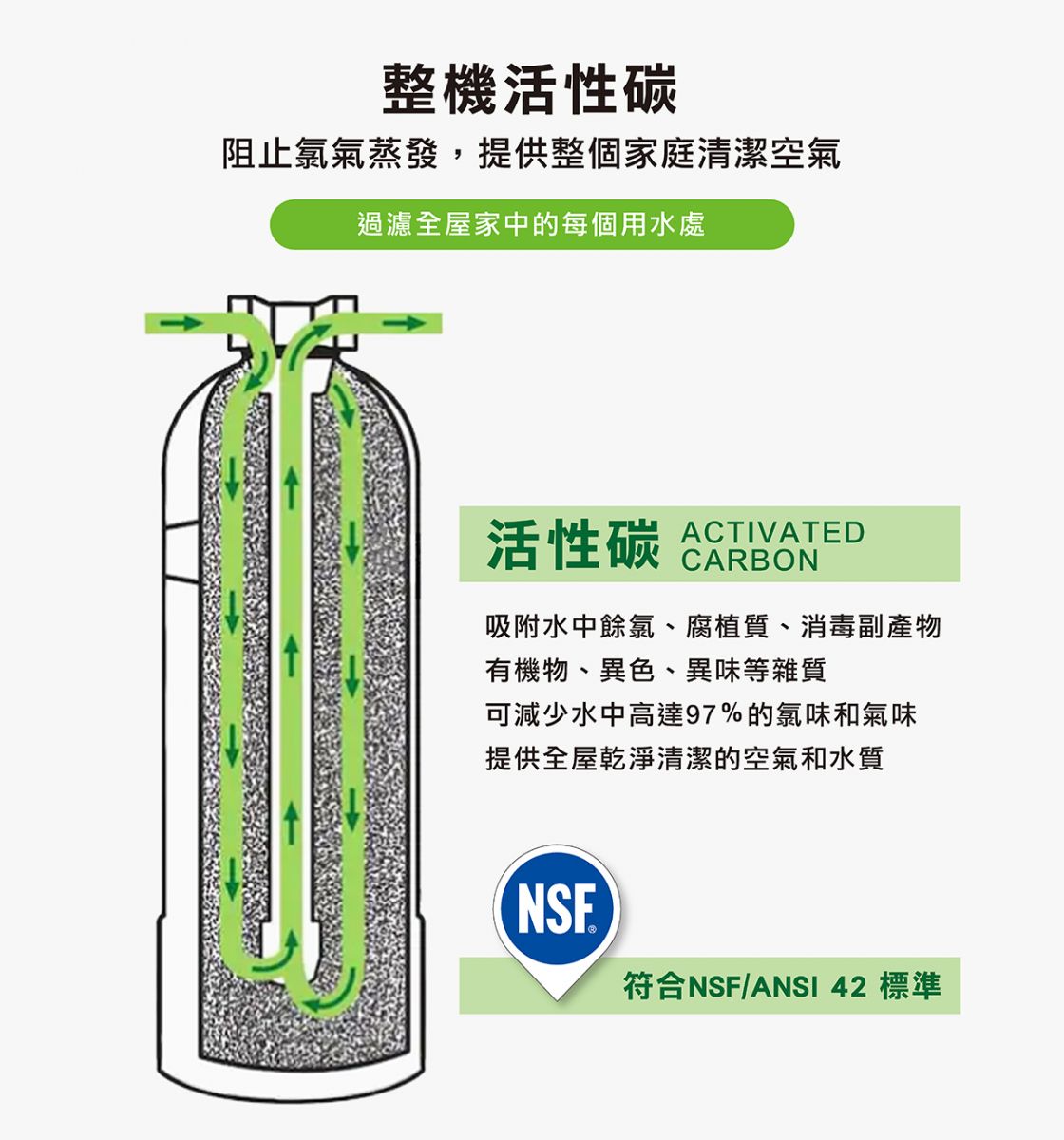 可減少6年或60萬加侖水中97%的氯味和氣味 |